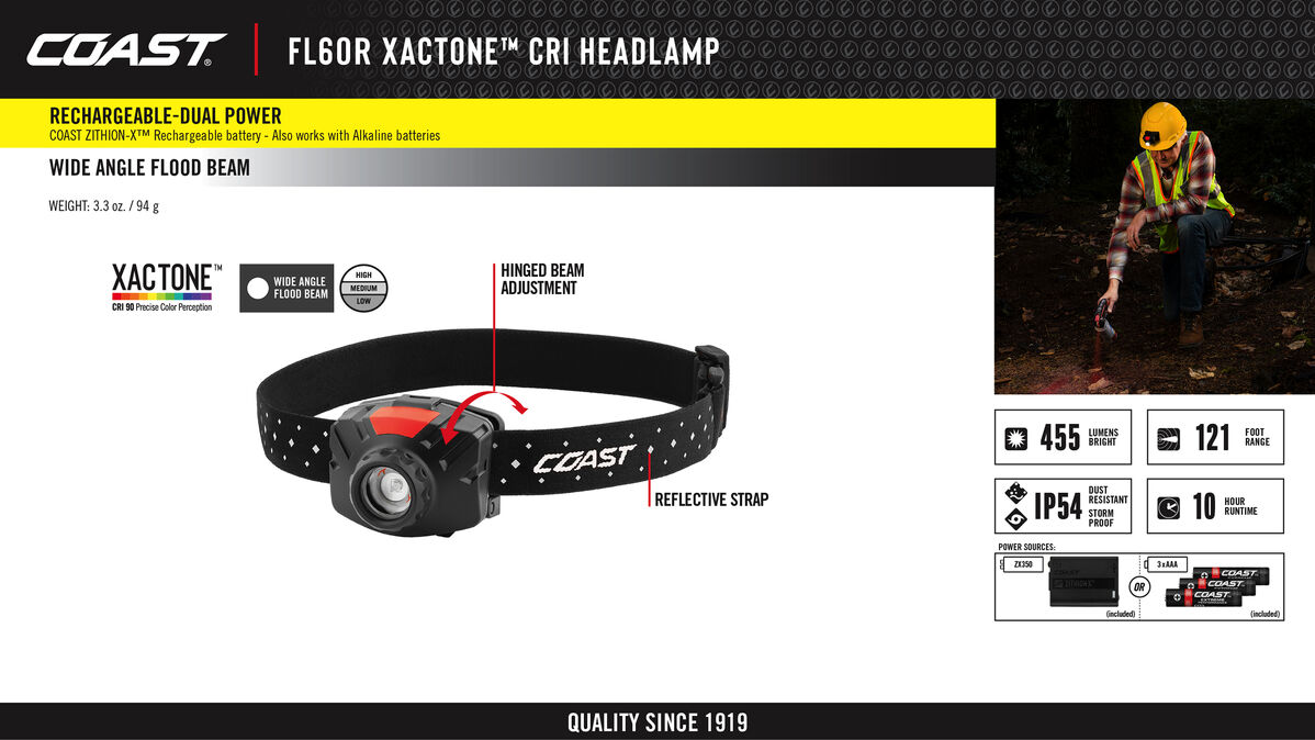Coast Headlamps 450 Lumens Rech 3 X Aaa