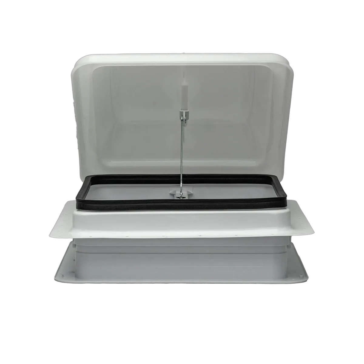 This vent has an extra strong galvanized steel roof flange in a painted white finish.