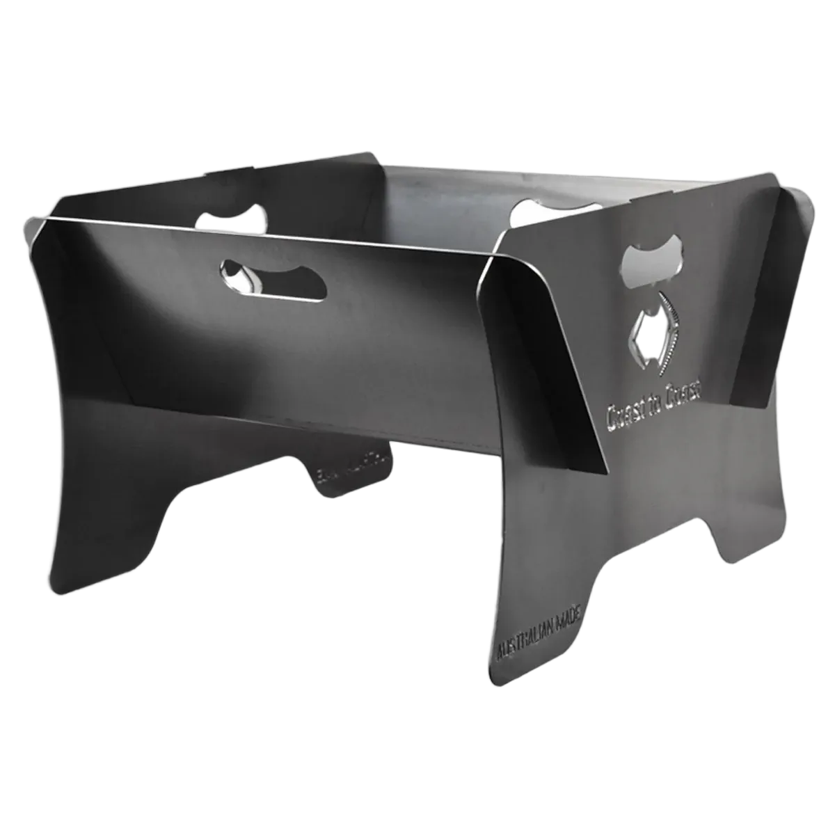 Made from 3mm BlueScope steel it comes standard with a 1.6mm Galvanised ember tray, optional grill and hot plate also available. The Coast Firepit is CNC Laser cut to precision for a perfect press fit assembly in seconds.