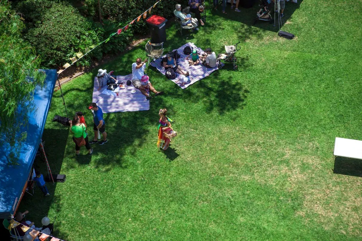 Large size 210 x 210cm. Ideal for bigger groups. Corner peg out points. Built in carry handle. Folds easily for compact easy storage and transport (42 x 26 x 13cm). Comfortable soft brushed fabric and moisture resistant PVC backing.