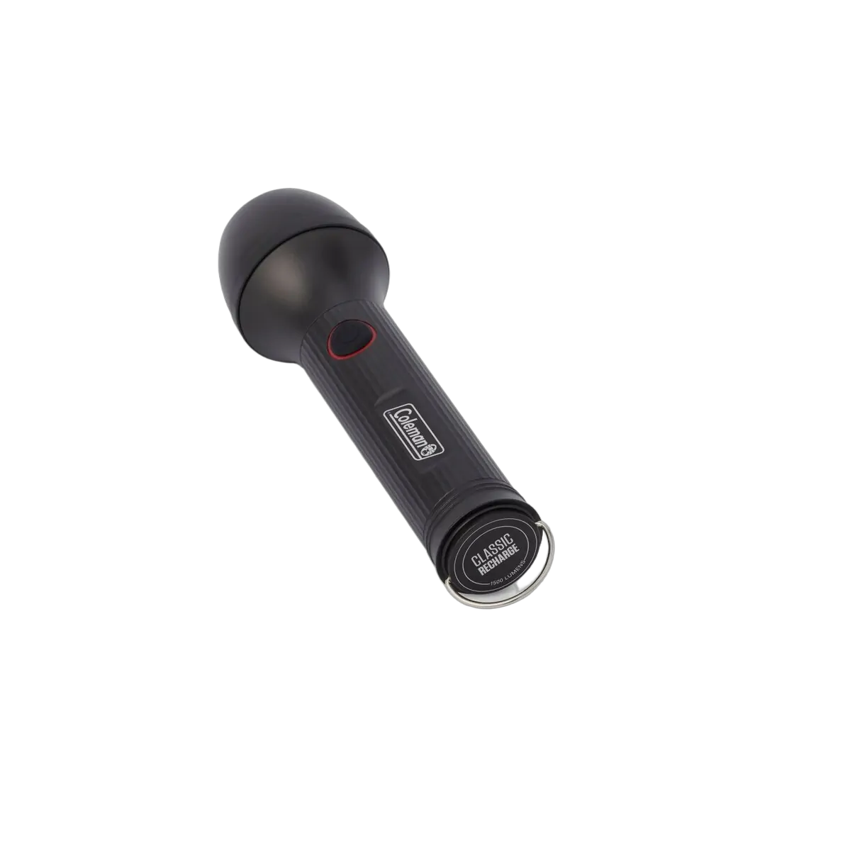 Blaze your way to the campsite or light up your house with the Coleman Classic Recharge 1500 Lumens LED Flashlight. With a rechargeable lithium-ion battery and a durable, impact-resistant design, this flashlight is a must-have for emergency kits or camping adventures. Its lightweight, strong aluminum design has vintage ribbing inspired by our original fuel burning collections, and its updated bail handle makes it easier to carry and hang.