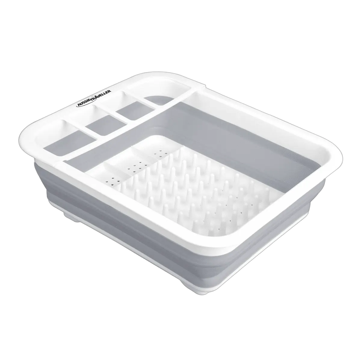 The Aussie Traveller Collapsible Dish Rack is the perfect addition to your caravan or camp kitchen. The drain holes allow for water to easily escape, and the side partitions can hold a range of cutlery. Its lightweight, compact, and easily collapsible design proves it an essential kitchen accessory, ideal for storing in compact spaces.