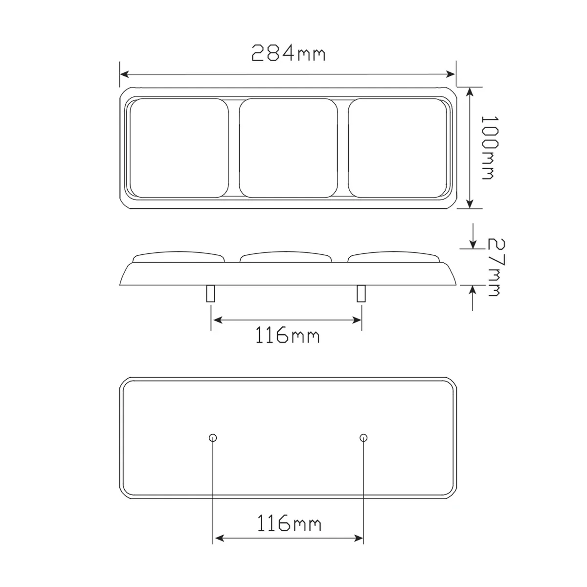 Stop/ Tail/ Indicator/Reverse, 12-24 Mulivolt, 284Mm X 100Mm X 27Mm, Blister, Ece 11736