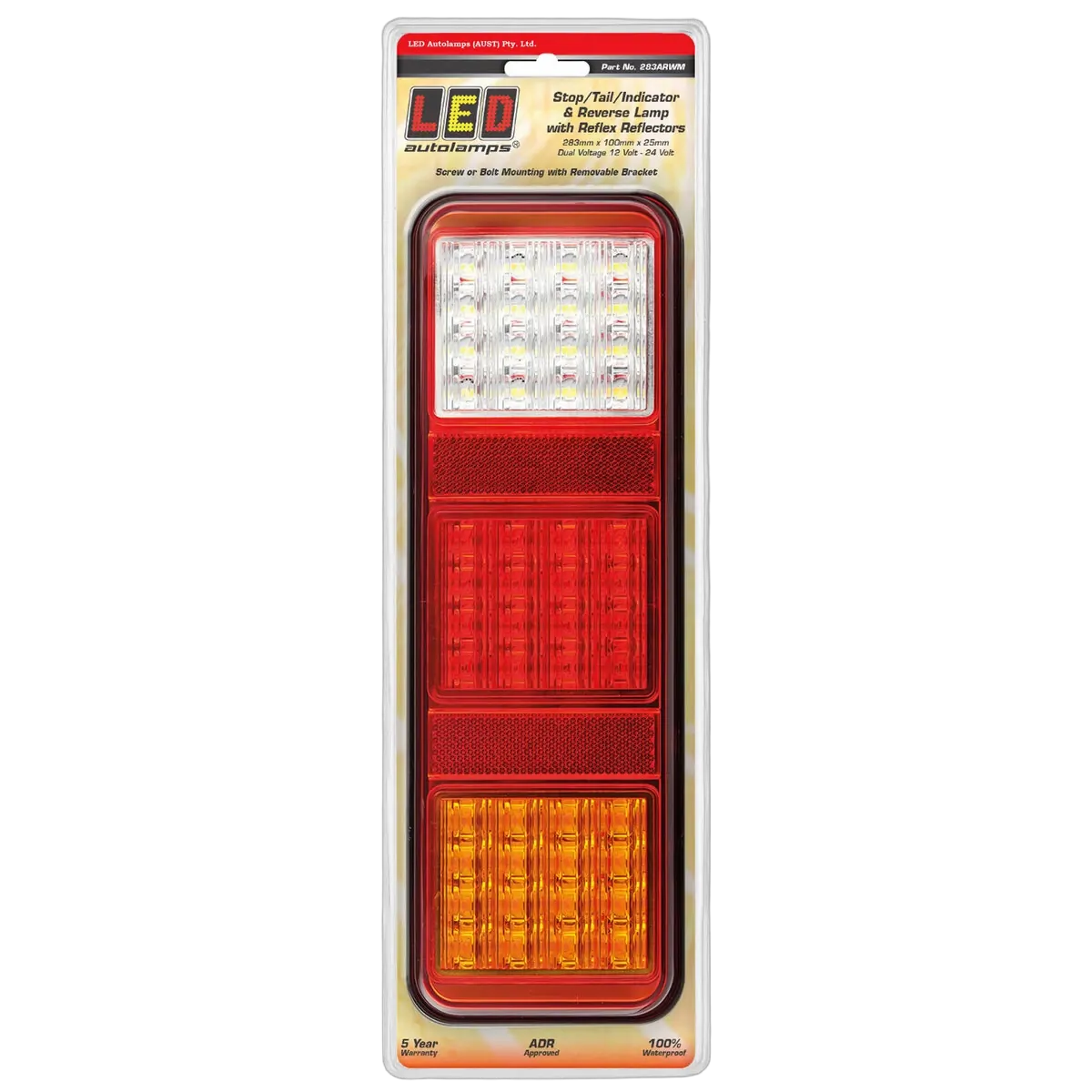 Screw Or Bolt On Mount, Stop/Tail/Indicator/Reverse Lamp With Inbuilt Reflectors, 12-24 Volt, 283Mm X 100Mm X 25Mm, Blister, Adr Approved, 5 Year Warranty