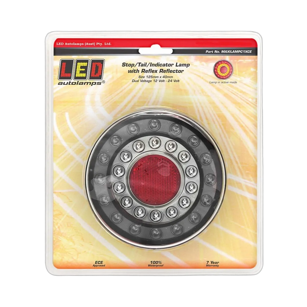 Maxilamp Single Lamp Black Chrome, Stop/Tail/Indicator/Reflector, Multi Volt 12-24V, 125Mm Round X 40Mm, Ece, 6445, Blister Packing.