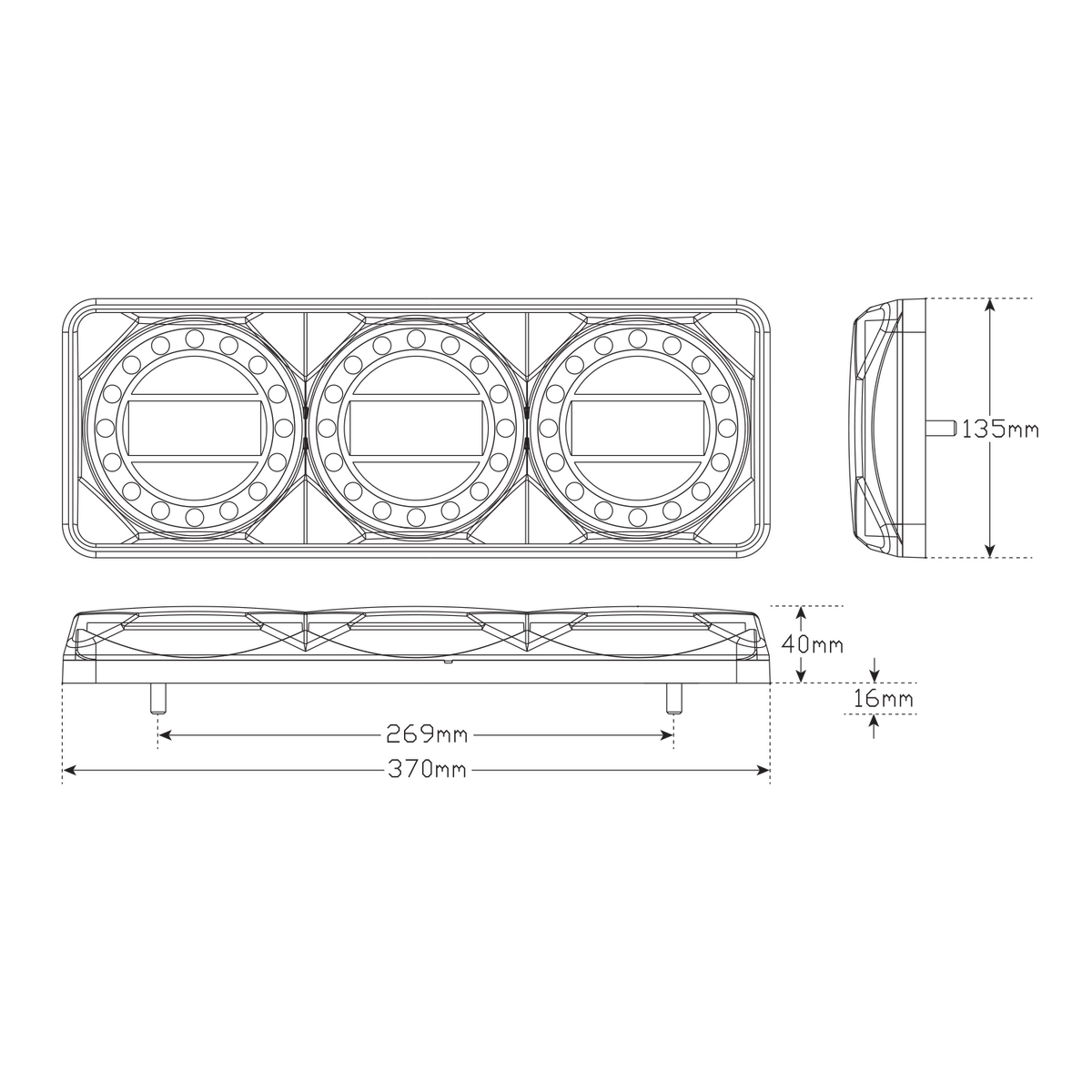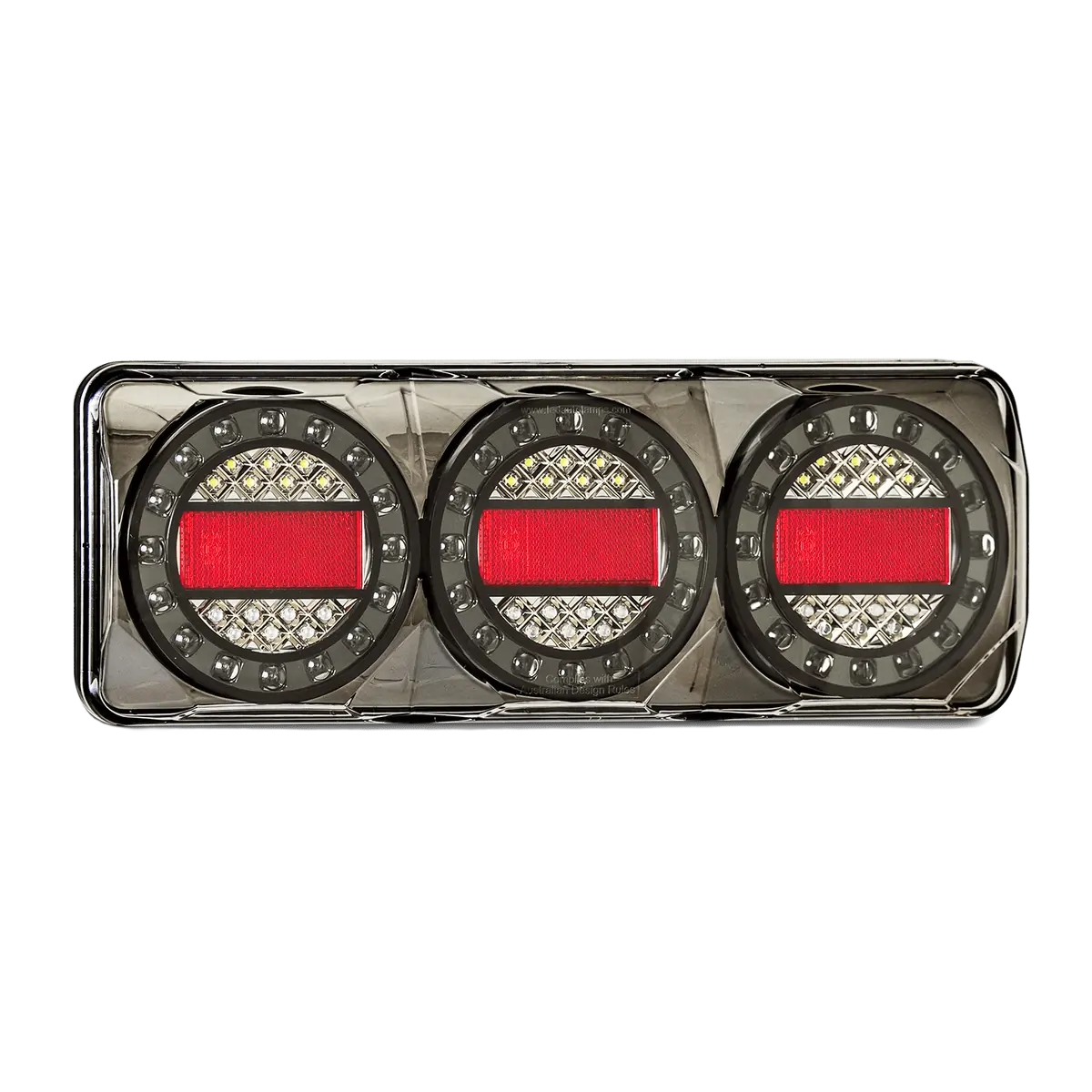 Maxilamp 3 Lamp Combination Black Chrome, Stop/Tail/Ind/Rev/Reflector, Multivolt 12-24V, 370X135X40Mm, Bulk, Adr, 40963/40962/40961/1472