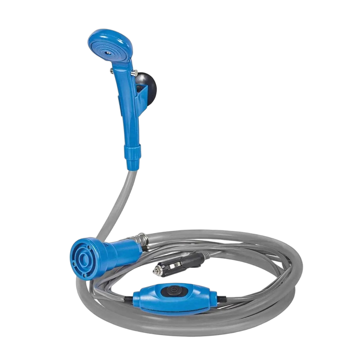 With adjustable water flow up to 4L per minute, the Companion 12V Camp Shower can be securely held in place with the hook and suction cup.