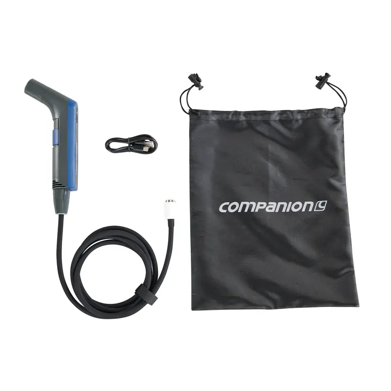 An LED battery indicator keeps you in the know, while the protective button cover prevents accidental activation in your pack. The built-in 800mAh lithium battery delivers up to 40 minutes of runtime, with USB-C charging in approximately 3 hours. The generous 1.8-metre hose gives you plenty of reach, and the included carry bag and charging cable make it easy to take on every adventure.