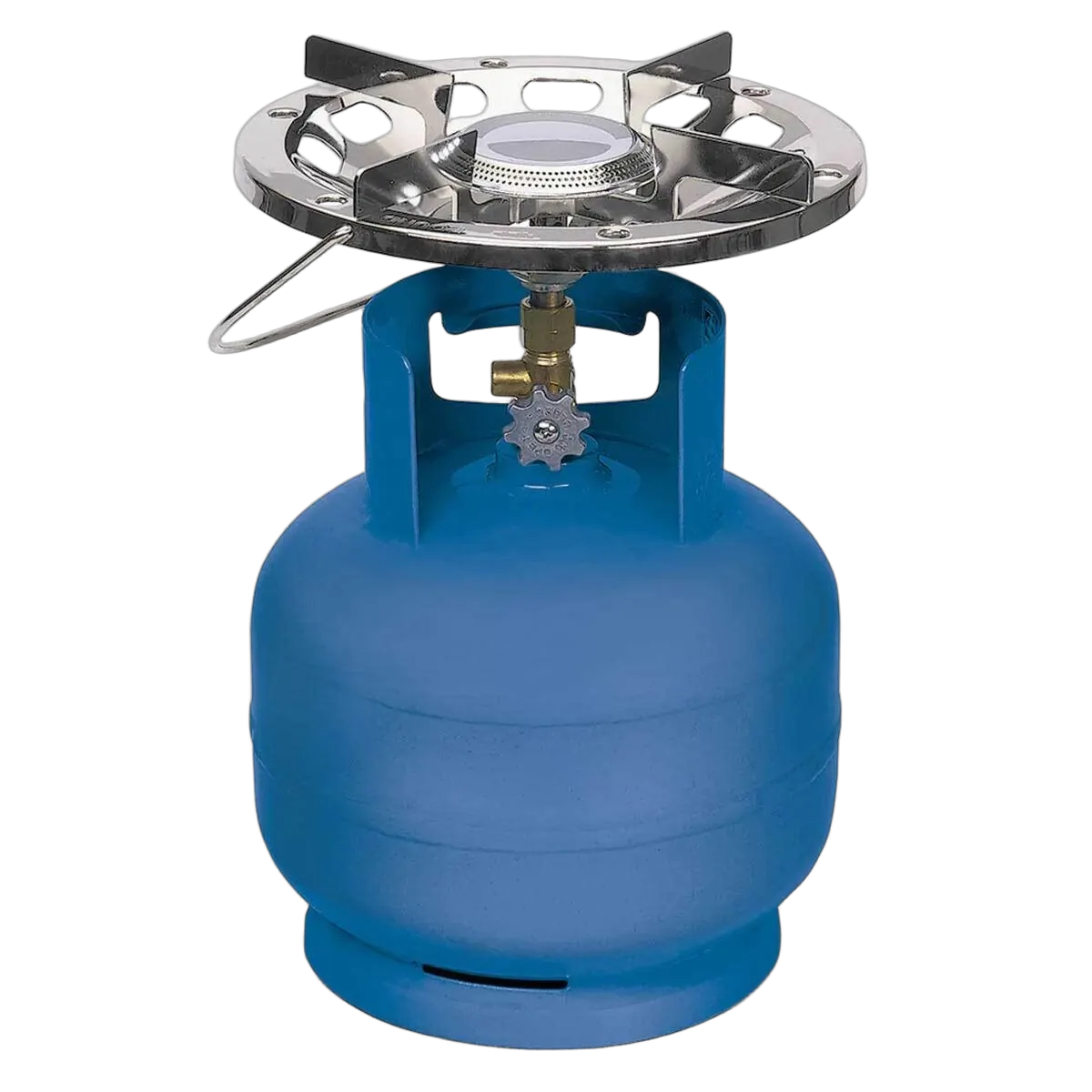 A single burner stove that simply screws into a 3/8" LH gas cylinder.