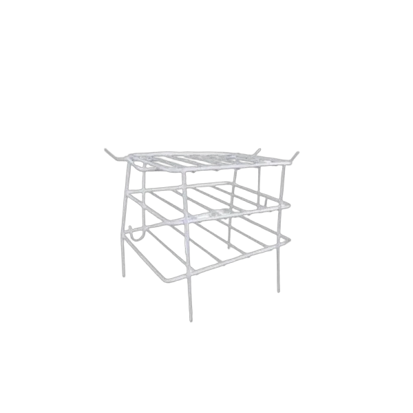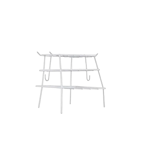 This handy plastic coated wire plate and mug holder holds 6 cups and 4 stacks of various sized plates.