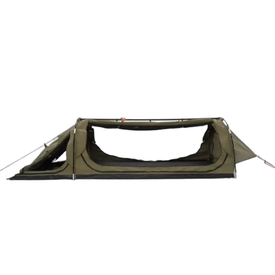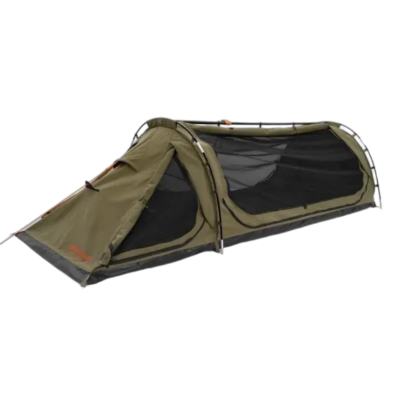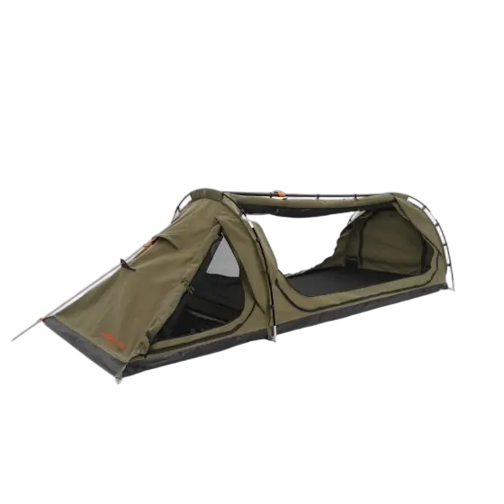 With two massive super-fine mesh doors and a zip down ventilation window with storm flap, this swag has unparalleled ventilation, keeping you cool while ensuring youre well protected from the elements all year round. The canvas storm covers can either be rolled up or converted to awnings, giving you extra shade and protection in all weather conditions.