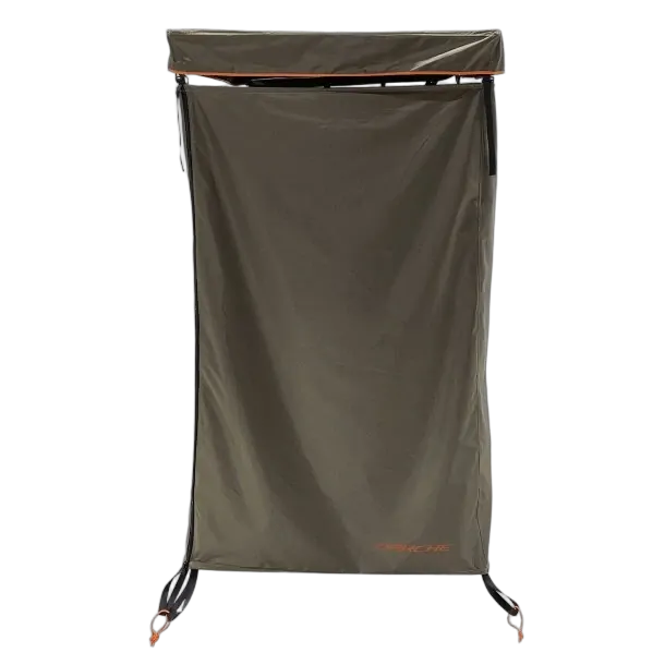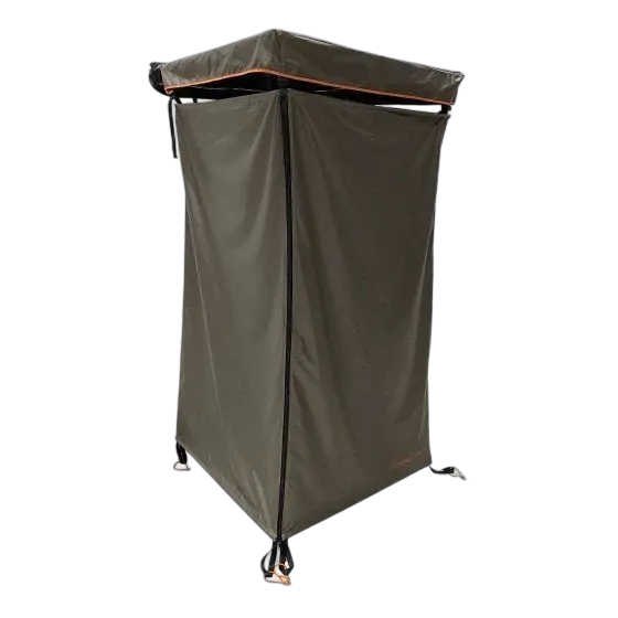 The polyester walls include a black privacy coating, making it perfect for showering, changing or use as toilet cubicle and the detachable roof can be removed or rolled back for extra ventilation or so you can enjoy the sky views while you shower.