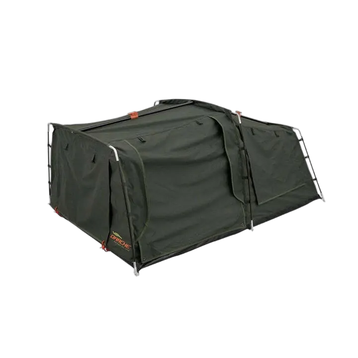 The Dirty Dee swag is free standing, its huge entry doors on both sides ensure that you can enjoy the incredible views. The super-fine mesh windows offer great ventilation, keeping you cool while ensuring you're well protected from the mozzies.