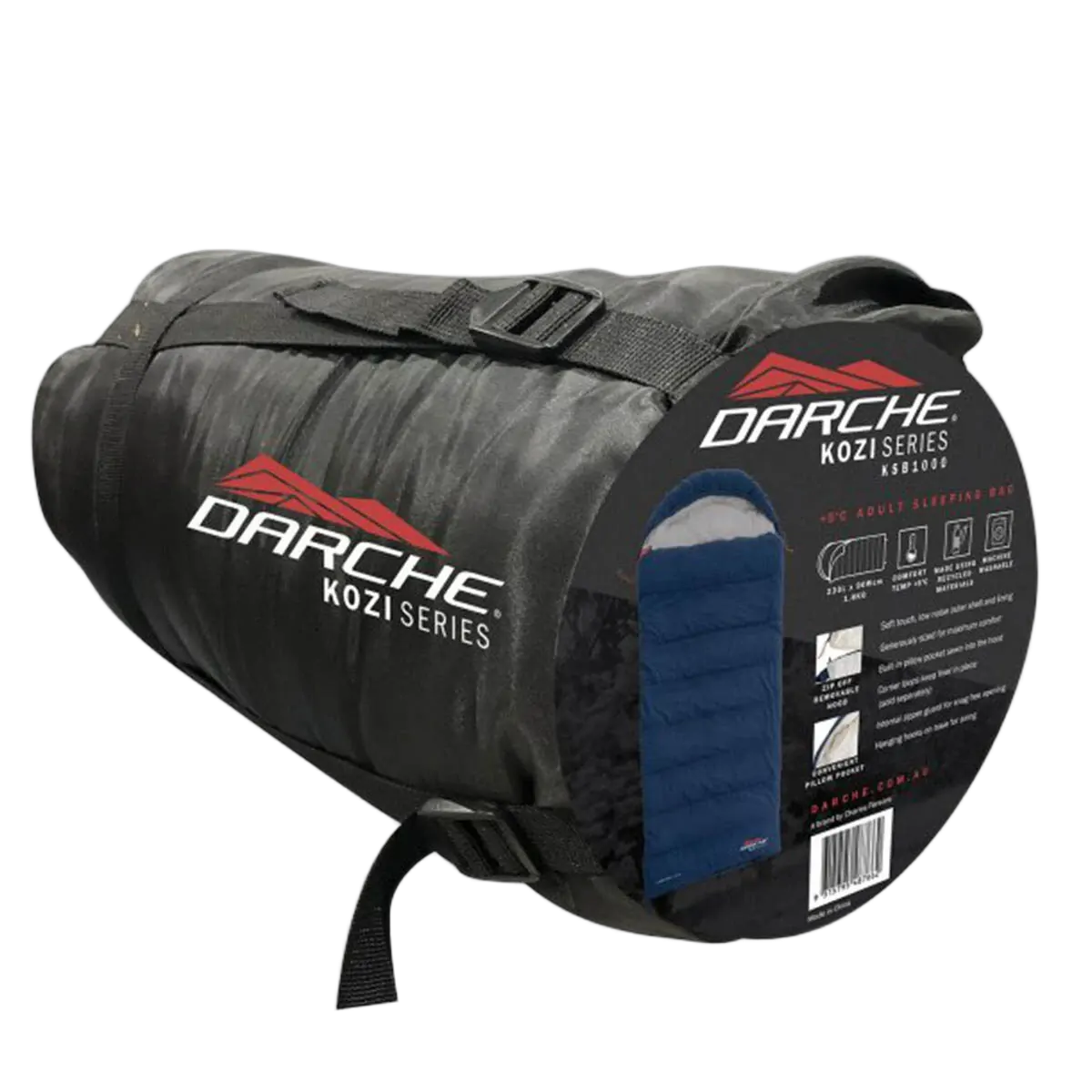 Keep warm on your next outdoor adventure with DARCHE® Darche Kozi Series Sleeping Bags. With options for all climates (-5°C, 0°C and +5°C) and channel stitching for even warmth distribution, these soft touch bags have a plush feel and are generously sized for a comfortable night's sleep. When you need to pack light, the pillow pocket sewn into the hood lining can be stuffed with clothes or towels to make a pillow, or zip off the removable hood and convert to a camper style sleeping bag. With hanging hooks on base for airing and machine washable materials, these bags are easy care for families who enjoy getting outdoors. For added protection, attach the antimicrobial treated Darche Kozi Series Sleeping Bag Liner (sold separately) using the corner loops sewn into the bag to keep it in place. For those who like to snuggle up, two bags can be zipped together to make a double bag.