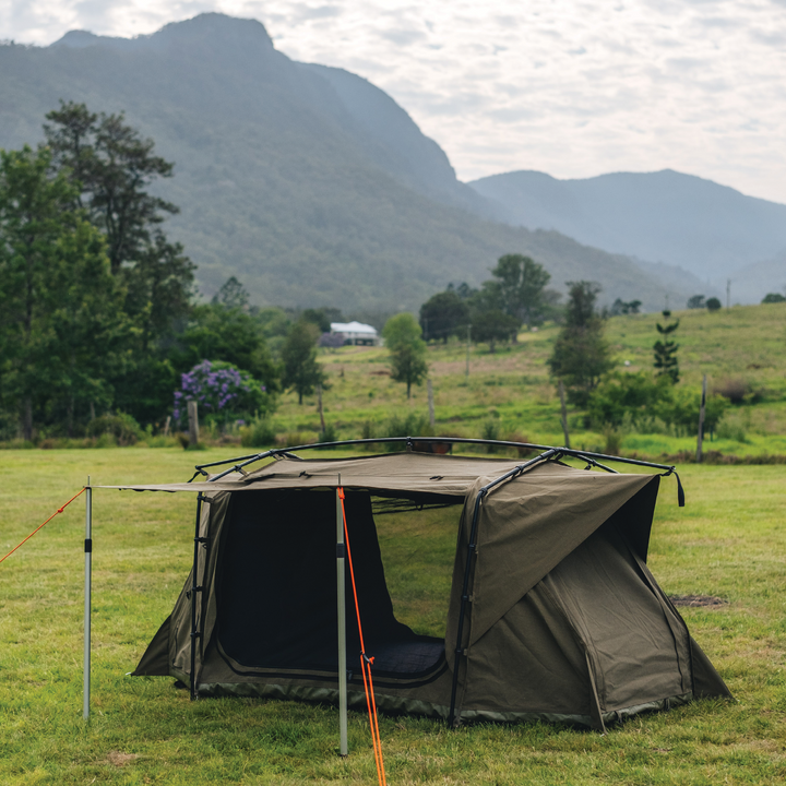 Darche’s bestselling Nebula Swag design is now available in a new smaller size and loaded with new features! Nebula Star 1250 Swag is enhanced with thoughtful new features for even better comfort and convenience outdoors. This latest model includes an integrated dual LED light, offering customizable lighting options to suit any time of day or night. The new storage loft and expanded storage pockets provide ample space to keep your gear organised and within reach. Plus, redesigned window orientations improve ventilation in rainy conditions, ensuring airflow without letting the weather in. Built for all-season durability and comfort, the Nebula Star 1250 Swag is ready for every adventure, rain or shine.