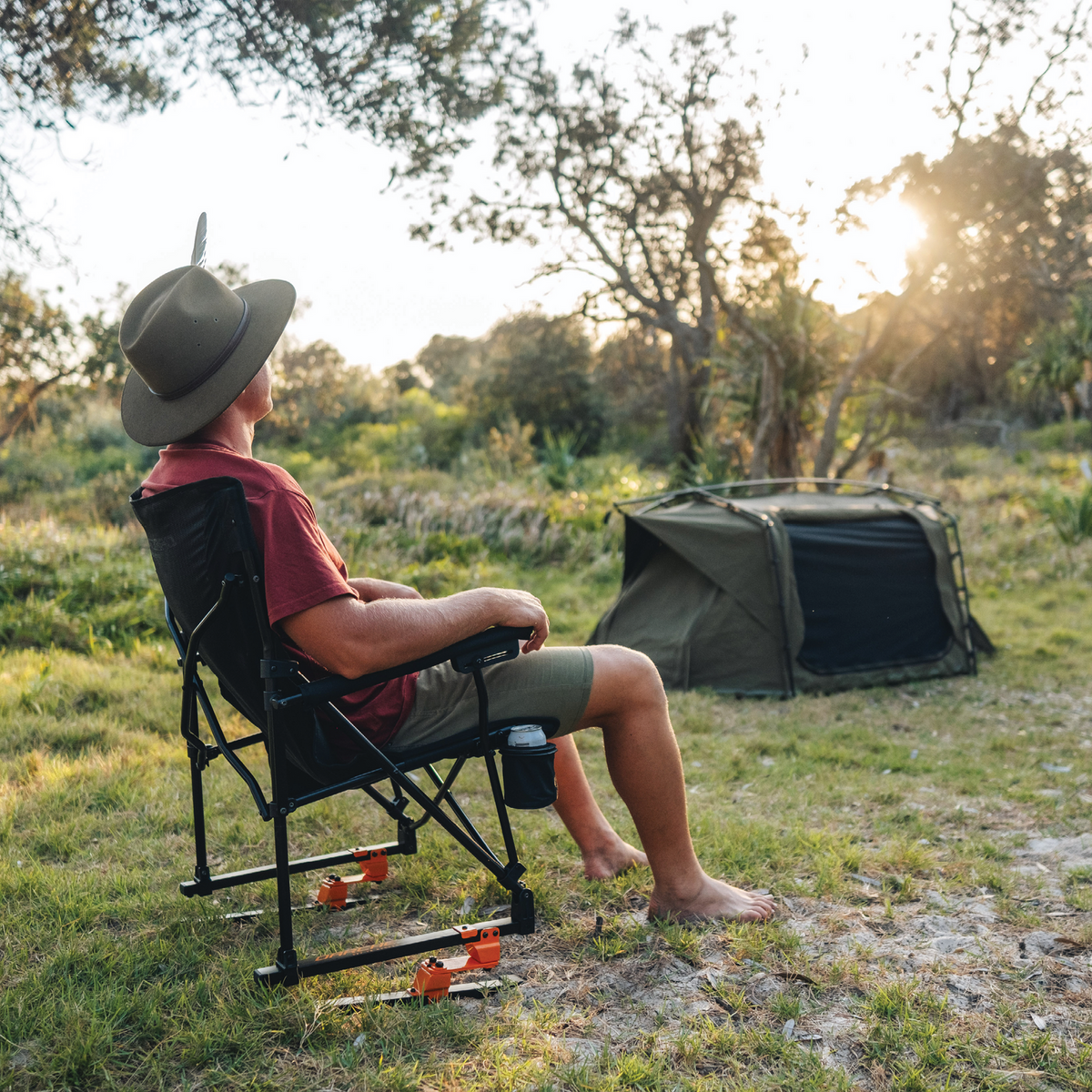 Embark on your next outdoor adventure with the Off Ya Rocker chair, where innovation meets comfort. This unique compact folding rocking chair is crafted for those who love the thrill of caravanning, touring, and camping. Enjoy a soothing rock with the chair’s spring action capability, making every moment under the open sky a delight. Designed with padded armrests, a convenient cup holder, and storage pockets, this chair ensures your essentials are always within reach. Plus, it comes with a handy carry bag, making it your perfect travel companion.