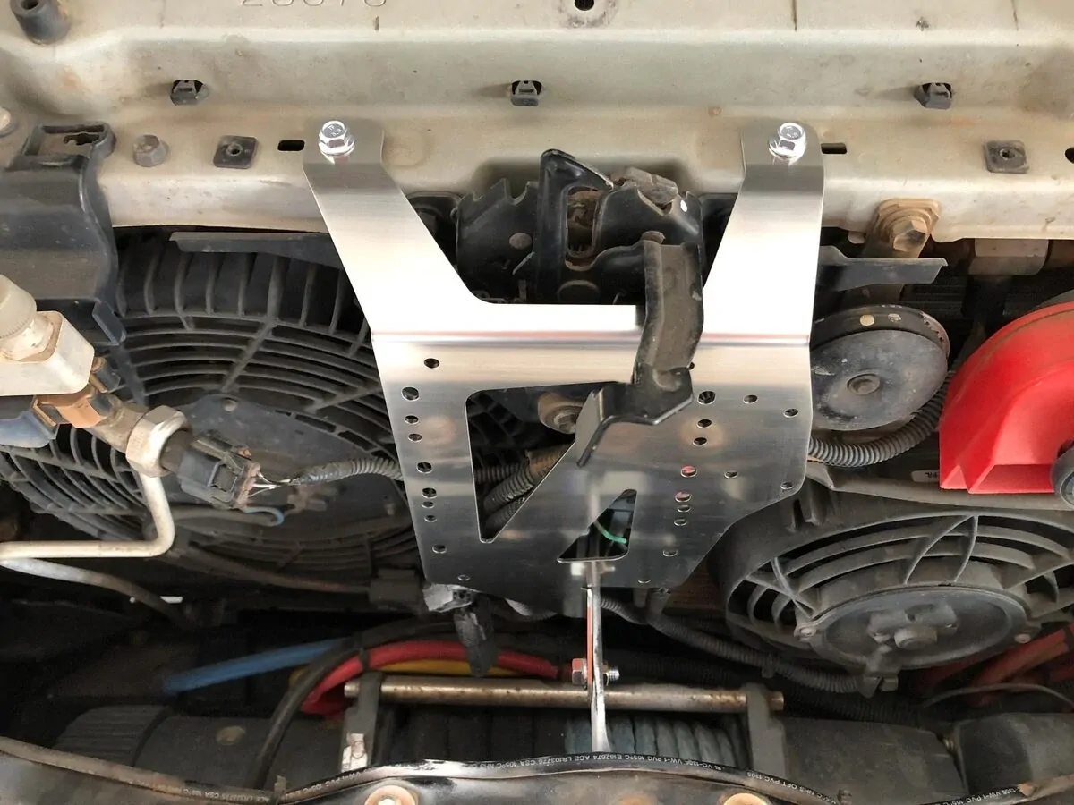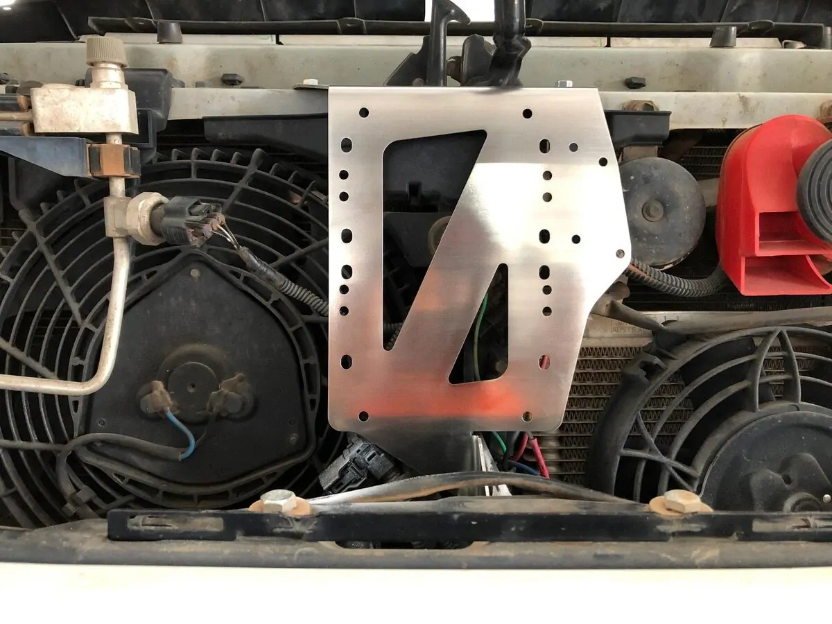 Easy to install using existing holes. Can be installed with with Kaon transmission cooler.