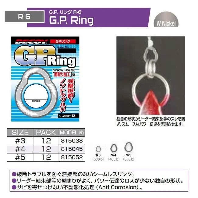 The unique design of the Decoy GP Ring make it the perfect choice for all Jigging applications.Its shape prevents any line slip so that the rig will hold in position. Very strong and the number one choice for a lot of Jiggers.