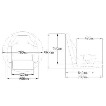 - Width : 600 Depth : 730 bolster down Height : 665mm