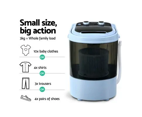 Devanti 3KG Mini Portable Washing Machine Shoes Wash Top Load Spin Camp Caravan
