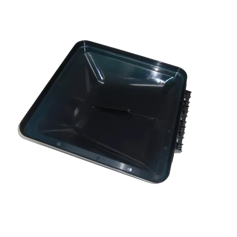 Replacement smoke lid to suit new style Ventline 14 inch roof vent. These have a sloped top and the hinge section on the lid in moulded plastic with no metal components.