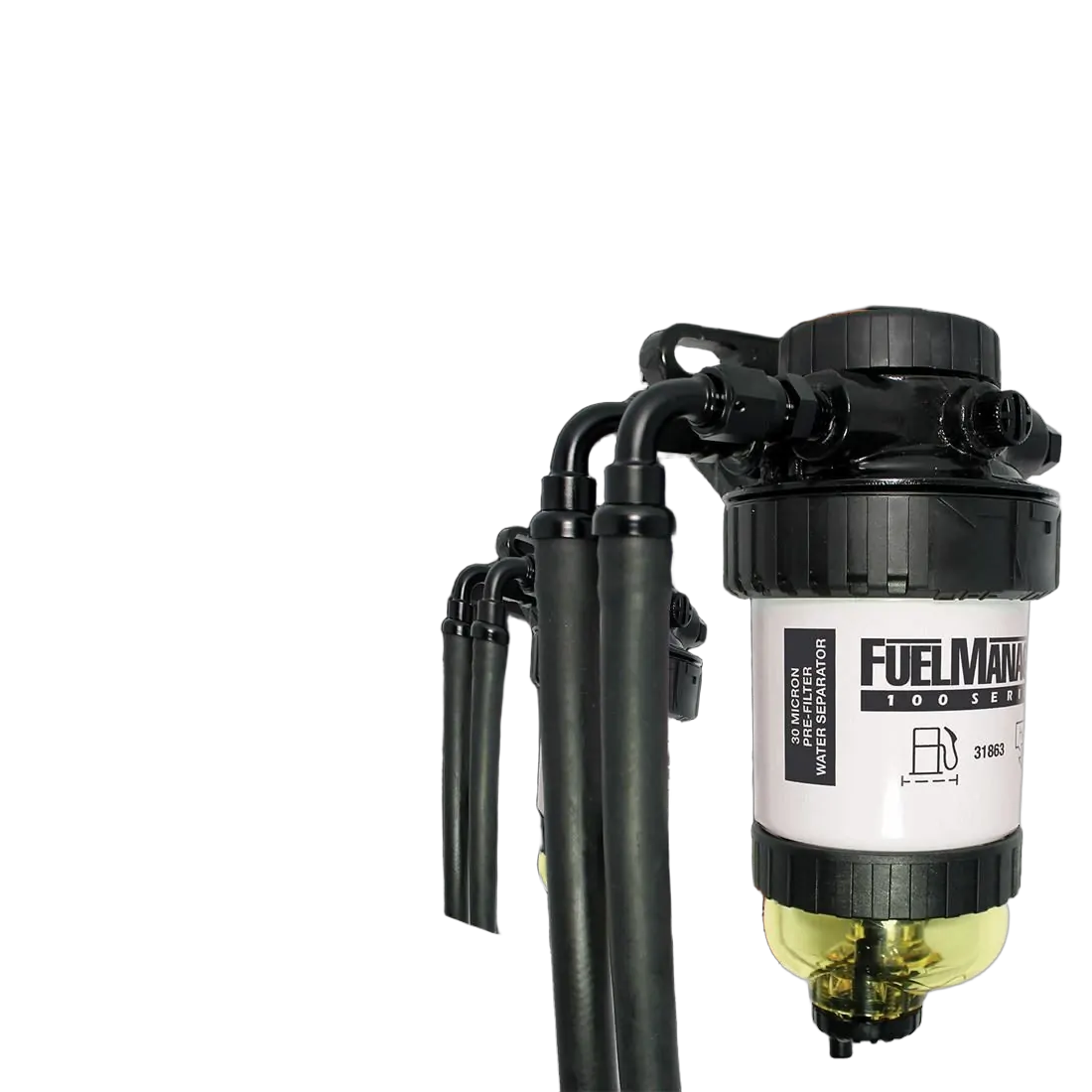 When you install the Direction Plus™ Fuel Manager pre-filter kit between the fuel tank and the O.E.M fuel filter, the Fuel Manager will remove most of the contamination by particles and water present in the diesel fuel.
