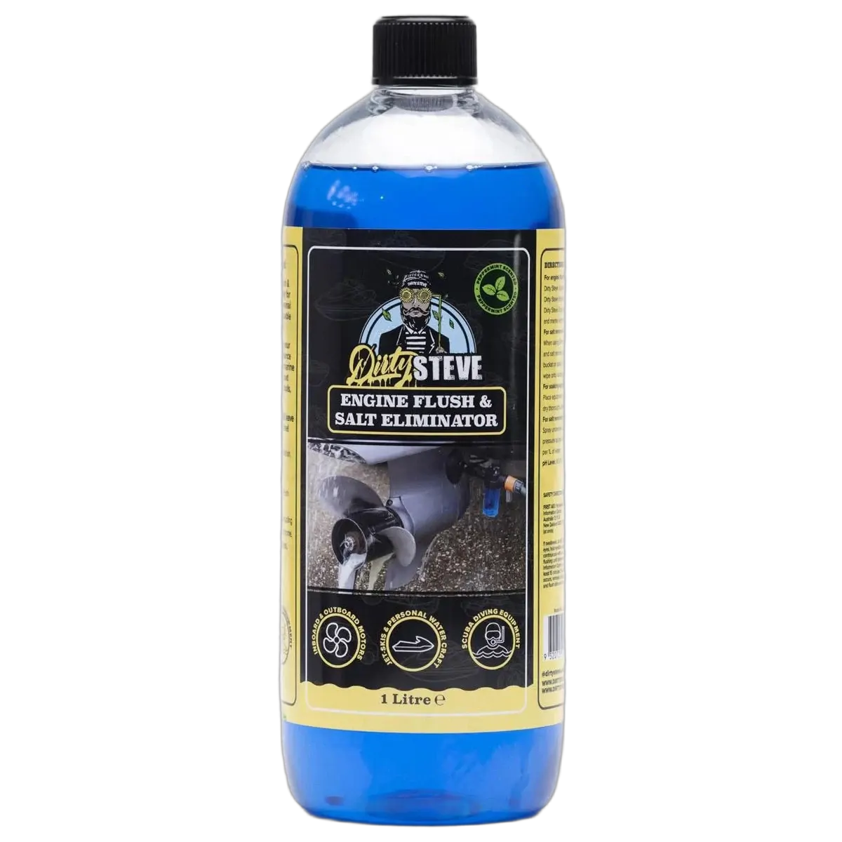 Dirty Steve Engine Flush & Salt Eliminator is perfect for general maintenance cleaning of Boats, Jet-Skis, Personal Water-Crafts and any other Water-craft, Trailer or surface that may come into contact with corrosive salty sea air. This innovative & flexible solution can be used as a marine engine flush after a day at sea, or used as a 'spray & rinse' for surfaces to wash away accumulated salt, assisting in corrosion prevention.
