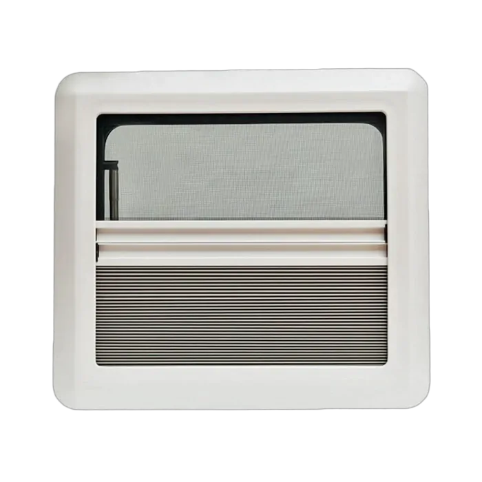 The Mobicool ABS range of windows comes with ASA thermoplastic external black frame and internal white frame with blackout blind and black fly screen integrated within. It is installed with a patent clip-on system designed for easy install.