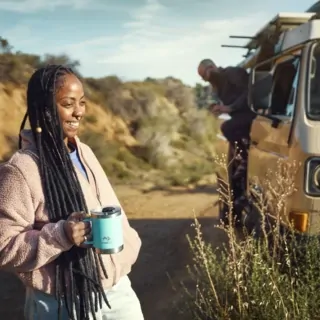 This double-walled, vacuum sealed thermally-insulated mug keeps your morning coffee or tea hot for longer than your porcelain mug at home. Made from durable stainless steel, it is virtually indestructible. The convenient handle gives you the familiar “coffee mug feeling”. The transparent screw-in lid avoids spills when you are moving around. All components are easy to clean and dishwasher-safe.