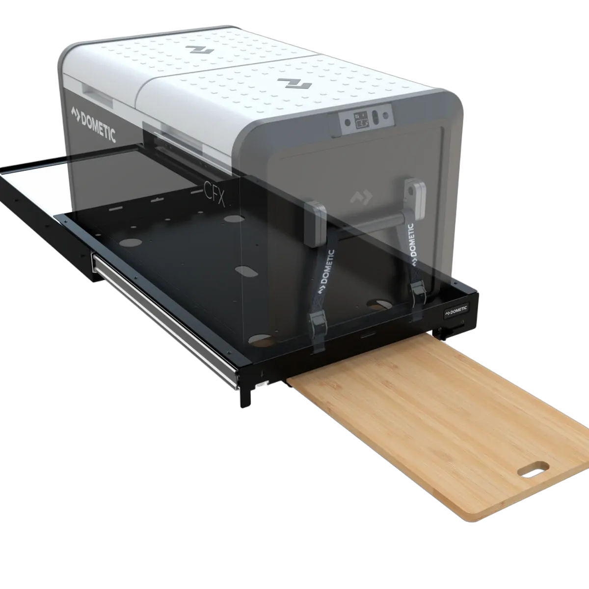 The most efficient way to access your fridge while maximising packing space in your vehicle. This heavy-duty slide is optimised for the CFX3 Fridge/Freezer Series and features a hold-open mechanism and high-strength bearings that allow the tray to extend nearly 100% from the anchored base, offering full access. Each slide features a slide out utility board, further extending your workspace and making meal prep easy with quick access to the fridge.