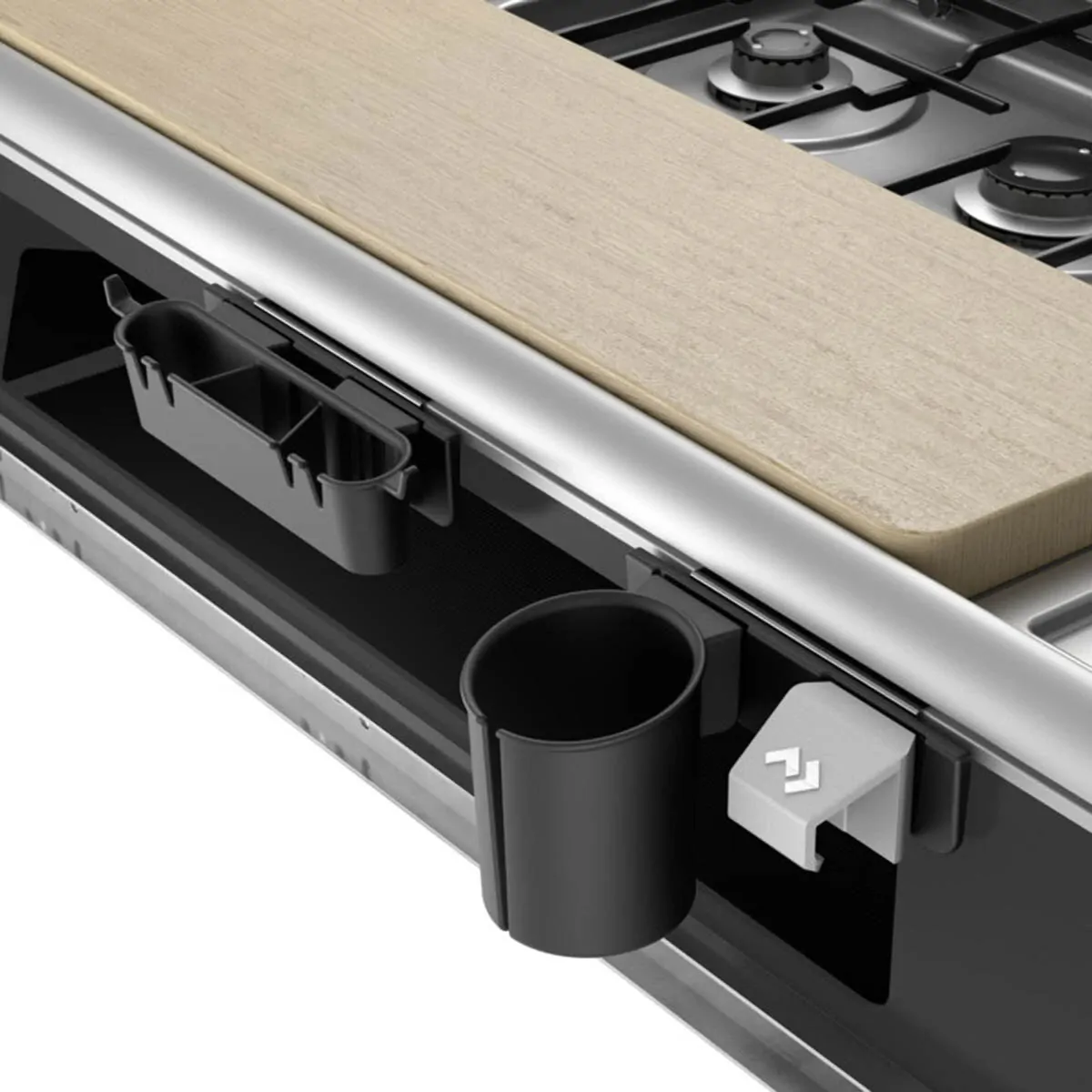 Extensive research and development were undertaken when designing the Dometic SKS101 Small Slide Out Kitchen, resulting in some seriously impressive features. None more impressive than the modular construction that is significantly lighter than other slide out kitchens on the market, weighing only 34 kg. Installation is simple, with a three-step installation method, and is compatible with all popular access doors. A range of optional accessories is available to maximise the functionality of the Dometic Small Slide Out Kitchen, Including a drink holder, wind deflector, bottle opener and utensil holder.