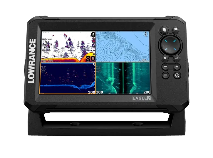 Eagle-7 TripleShot™ AUS/NZ: 7" IPS screen, TripleShot™ HD transducer, C-MAP® Embedded inland and coastal charts for New Zealand and Australia.