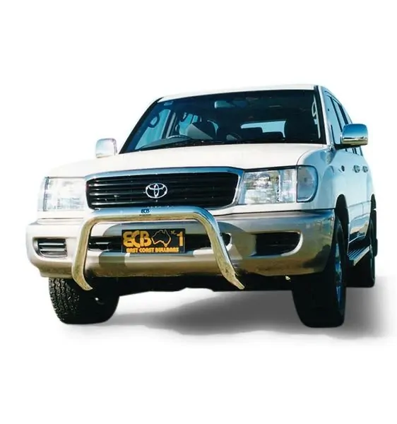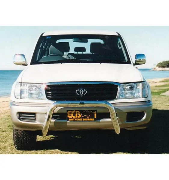 This ECB Nudge Bar has been designed specifically for the Toyota Landcruiser 100 Series GXV and will provide frontal protection and enhance the aesthetics of the vehicle. Designed and manufactured in Australia to suit our harsh conditions, this Nudge Bar is formed from high tensile alloy tubing that will never rust or corrode. Each Nudge Bar comes standard with spotlight mounting tabs. Our Nudge Bars are built stronger and substantially lighter than poorer quality, thinner sectioned imported stainless steel alternatives and come with a lifetime warranty. Your ECB Nudge Bar is available in a mirror finished polished alloy or choose from one of our low maintenance powder coat finishes.