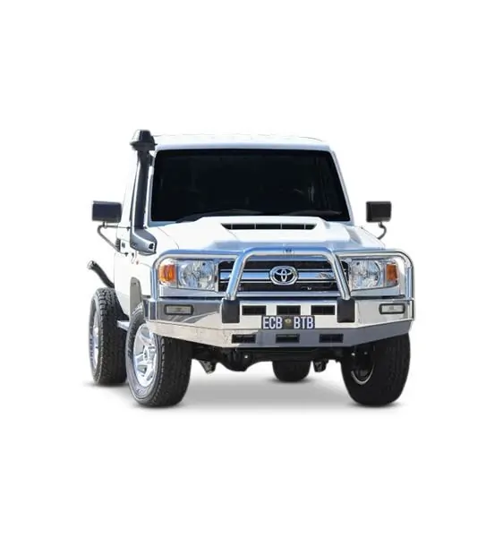 For the ultimate in frontal protection you will find it hard to go past the strength, quality and style of the ECB Big Tube Bullbar for your Toyota Landcruiser 79 Series. The single piece channel is fully welded and manufactured from high tensile, structural grade alloys to provide maximum strength. Our Big Tube Bar® incorporates a full width, braced lower protection skirt and the specifically designed steel mounting system ensures a neat and sturdy fit. ECB LED light combinations, air directional cooling vents and an aerial bracket are all standard features. Your ECB Big Tube Bar® is available in a mirror finished polished alloy or choose from one of our low maintenance powder coat finishes. Our ECB Big Tube Bar® is proudly manufactured in Australia and we offer a lifetime warranty