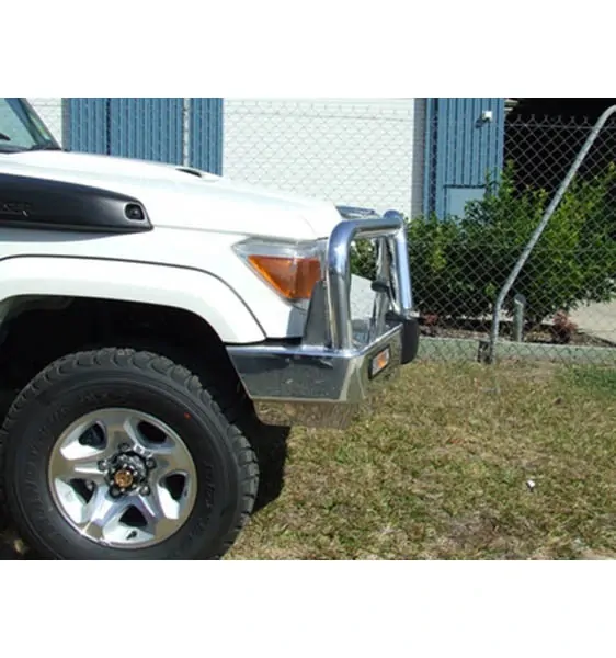For the ultimate in frontal protection you will find it hard to go past the strength, quality and style of the ECB Big Tube Bullbar for your Toyota Landcruiser. The single piece channel is fully welded and manufactured from high tensile, structural grade alloys to provide maximum strength. Our Big Tube Bar® incorporates a full width, braced lower protection skirt and the specifically designed steel mounting system ensures a neat and sturdy fit. ECB LED light combinations, air directional cooling vents and an aerial bracket are all standard features. Your ECB Big Tube Bar® is available in a mirror polished finish or choose from one of our low maintenance powder coat finishes. Our ECB Big Tube Bar® is proudly manufactured in Australia and we offer a lifetime warranty.