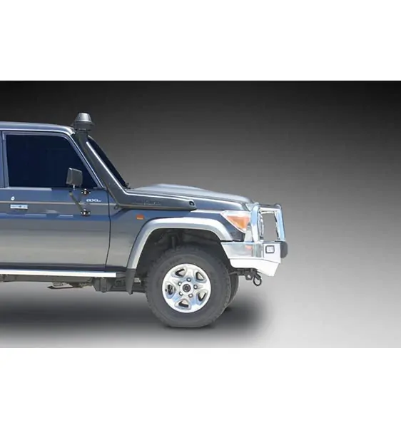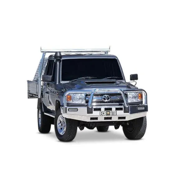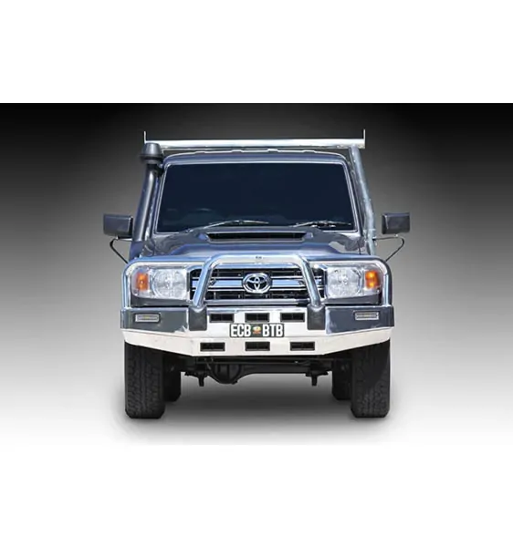 For the ultimate in frontal protection you will find it hard to go past the strength, quality and style of the ECB Big Tube Bullbar for your Toyota Landcruiser 79 Series. The single piece channel is fully welded and manufactured from high tensile, structural grade alloys to provide maximum strength. Our Big Tube Bar® incorporates a full width, braced lower protection skirt and the specifically designed steel mounting system ensures a neat and sturdy fit. ECB LED light combinations, air directional cooling vents and an aerial bracket are all standard features. Your ECB Big Tube Bar® is available in a mirror finished polished alloy or choose from one of our low maintenance powder coat finishes. Our ECB Big Tube Bar® is proudly manufactured in Australia and we offer a lifetime warranty