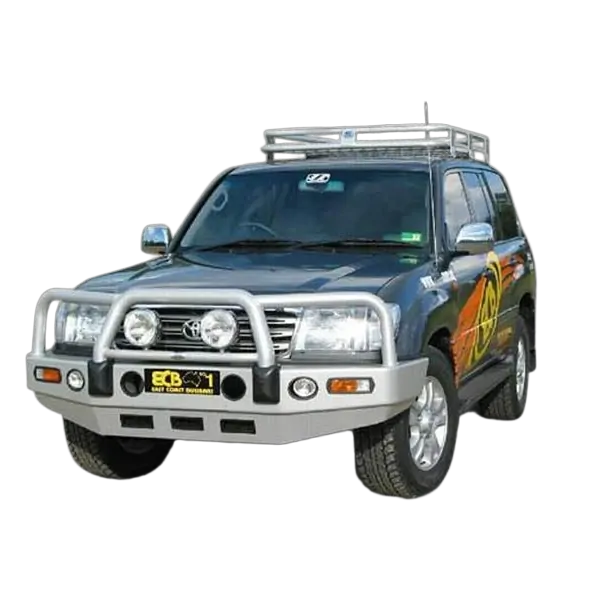 For the ultimate in frontal protection you will find it hard to go past the strength, quality and style of the ECB Big Tube Bullbar for your Toyota Landcruiser 100 Series Live Coil. The single piece channel is fully welded and manufactured from high tensile, structural grade alloys to provide maximum strength. Our Big Tube Bar® incorporates a full width, braced lower protection skirt and the specifically designed steel mounting system ensures a neat and sturdy fit. ECB LED light combinations, bumper lights, air directional cooling vents and an aerial bracket are all standard features. Your ECB Big Tube Bar® is available in a mirror finished polished alloy or choose from one of our low maintenance powder coat finishes. Our ECB Big Tube Bar® is proudly manufactured in Australia and we offer a lifetime warranty.