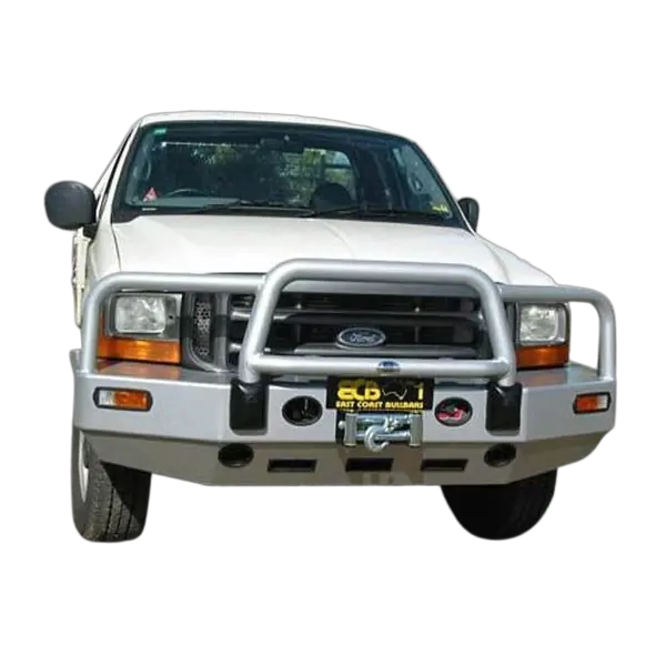 For the ultimate in frontal protection you will find it hard to go past the strength, quality and style of the ECB Winch Compatible Big Tube Bullbar for your For Ford F250 Super Duty. The single piece channel is fully welded and manufactured from high tensile, structural grade alloys to provide maximum strength. This no compromise design is engineered to accommodate up to a 9,000lb low mount winch that is attached to the chassis as part of the specifically designed steel mounting system ensuring a neat and sturdy fit. Our Winch Compatible Big Tube Bar® incorporates a full width, braced lower protection skirt. ECB LED light combinations, air directional cooling vents and an aerial bracket are all standard features. Your ECB Winch Compatible Big Tube Bar® is available in a mirror finished polished alloy or choose from one of our low maintenance powder coat finishes. Our ECB Winch Compatible Big Tube Bar® is proudly manufactured in Australia and we offer a lifetime warranty.