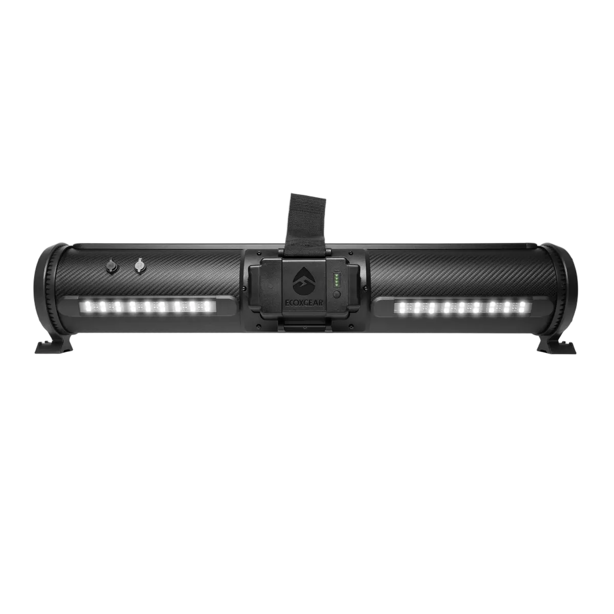 The TRUE WIRELESS SoundExtreme SEB 26 has all the features of the original SE26. Now with a Long-lasting Lithium-Ion battery pack. Easy install, no longer need to connect to the 12v battery source. The Powersports sound bar and LED lighting system are perfect for your 4WD, ATV/UTV, boat, and golf cart. 100% waterproof, dustproof, and dirtproof. 500 watts of power to 8 marine grade speakers provide a great listening experience. With our EcoCast feature connect up to 50 Sound Extremes at a time! Patent Pending.