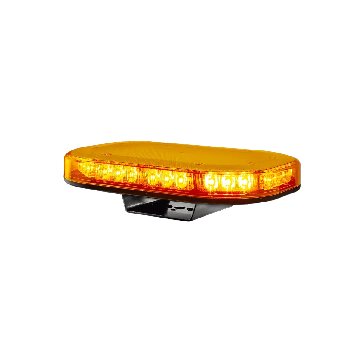 Amber Emergency Mini Light Bar, Amber Lens With White Leds, 18 Selectable Flash Patterns, 12-24 Volts, 246Mm X 171Mm X 64Mm, Single Bolt Mount, Box, 5 Year Warranty