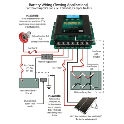 * Maximum achievable output on the DC2DC+ unit when using 20Voc Solar Panels will be the approx 35amps. ** Maximum achievable output on the DC2DC+ unit when using 43Voc Solar Panels will be the approx 47amps.