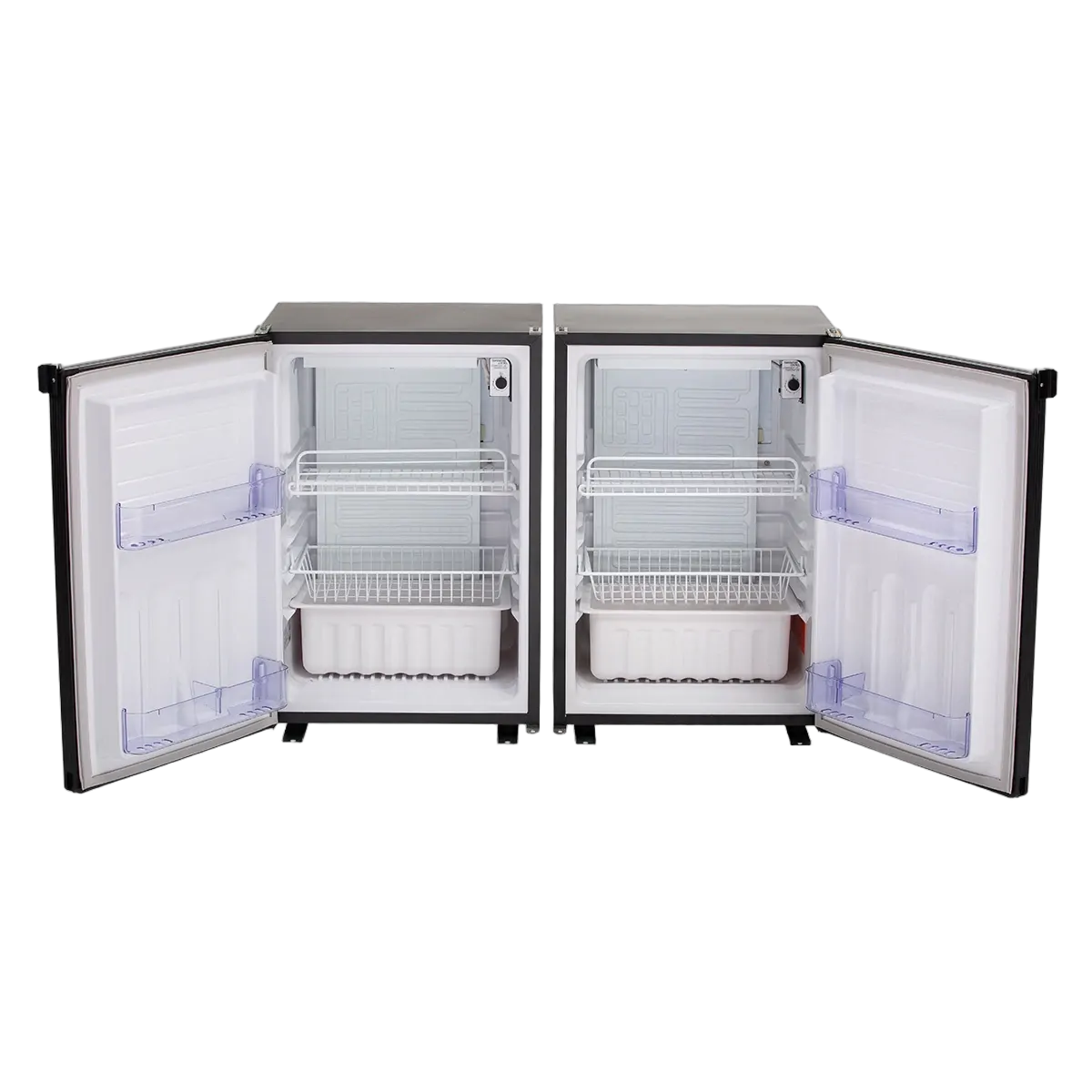 Reversible door and replaceable door panel so you can customize your refrigerator to match your vehicle’s interior. Turbo fan standard., 12/24V DC (4.8/2.4A) & 240V AC, 35kg