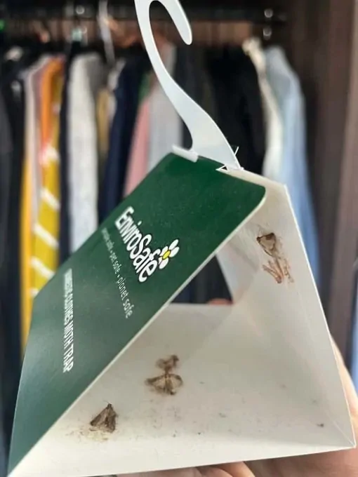 The Domestic Clothes Moth Trap combines powerful pheromone attractants with convenient lure-in-glue technology to create an economical, effective, easy-to-use clothes moth trapping system that will alert you to moth infestations in your wardrobe, carpets or furnishings.
