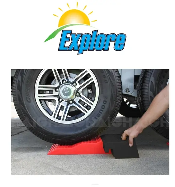 Keep your caravan from leaning on an angle because of uneven surfaces with the help of Explore Caravan Levelling Ramps. This two-piece, three-step leveller is suitable for both single and tandem axles. Dividing the leveller into two pieces allows tandem axle wheels easier access to the ramps - then simply reconnect the pieces to benefit from the second and third levels. Apply to Explore Levelling Ramp Wheel Chocks to keep your wheels levelled extra securely.