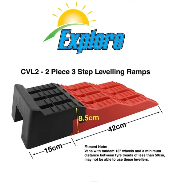 Note: Vans with tandem 13" wheels and a minimum distance between tyre treads of less than 50cm, may not be able to use these levellers.