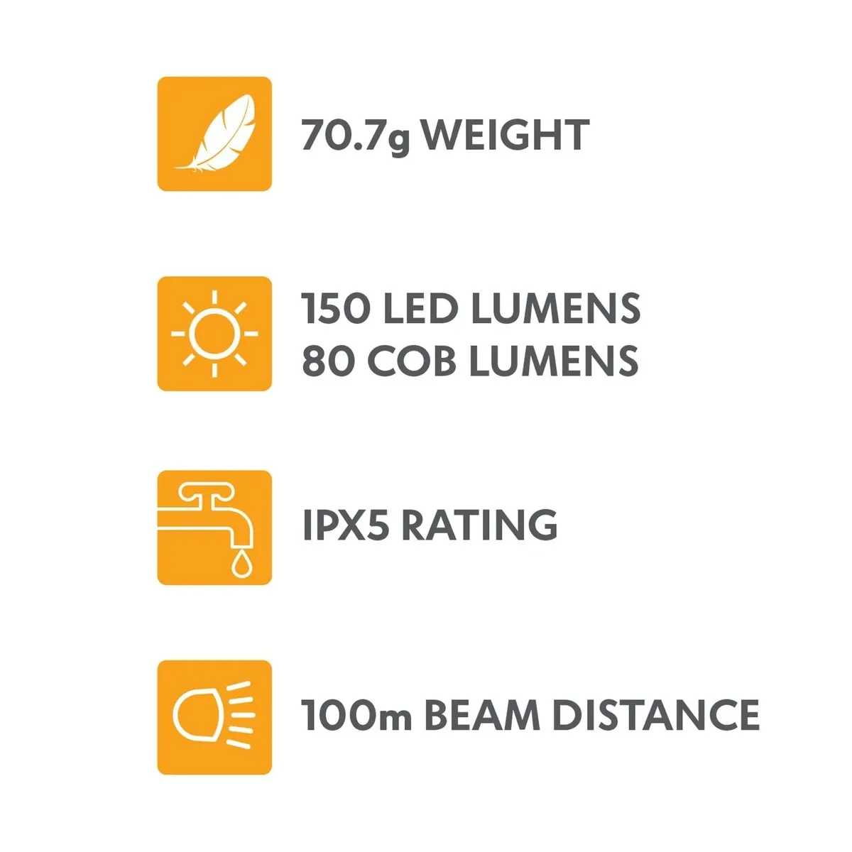 It has an on/off sensor as well as a distance and area light and high, low and blink/SOS modes. It provides 150 lumens from LED and 80 from COB with a total beam distance of 100m. There’s no need for disposable batteries as this unit comes with a 1200mAh lithium battery and a USB cable for recharging, plus it is IPX4 rated for protection.