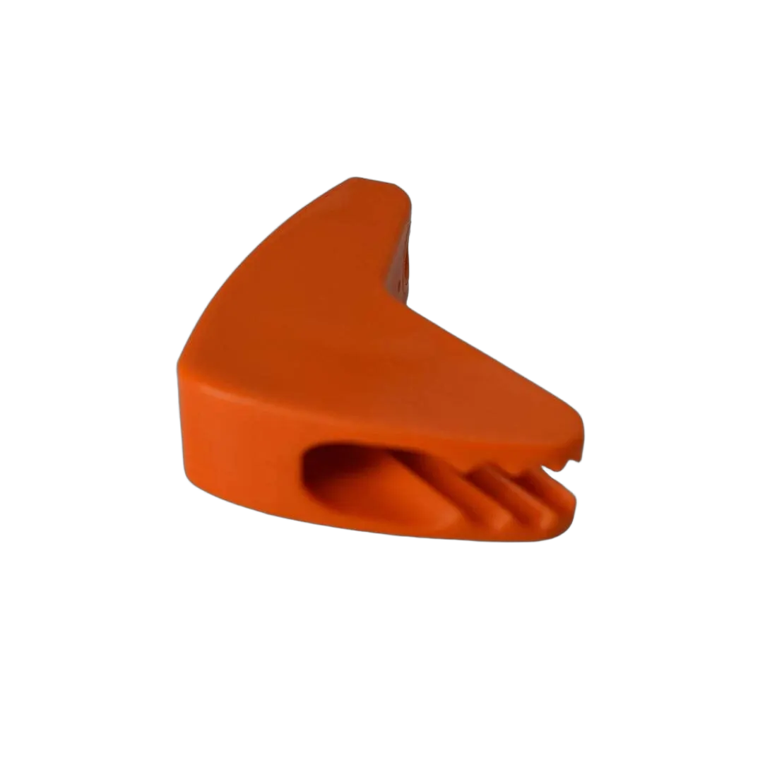 - With your other hand place your thumb above the teeth and grasp the guy rope with your fingers