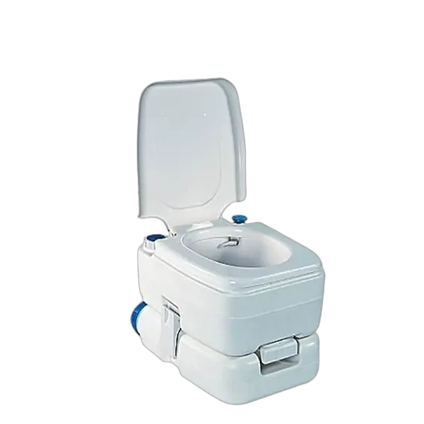 Fiamma Bi-pot 30, Perfect for camping and caravanning. These Italian Bi-Pots are a simple, and strong, self-contained fresh water flushing portable toilet. They can be dismantled (valve inclusive) to facilitate a thorough leaning and emptying is easy and hygienic thanks to the large discharge openings. Stainless steel side hooks securely lock the top tank to the waste tank ensuring no movement whilst in use. The waste tank is made of a one-piece moulding which means no nasty leaks and the release valve is watertight too with a handy anti-odour seal. Semi-transparent lids (on the waste outlet and the top tank inlet) help to keep track of each tank’s internal level so you know when to empty or top up. Both tanks are scratch resistant.