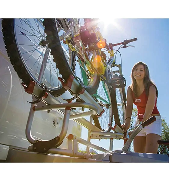 The XL A Pro 200 balances on top of the A-frame allowing you to open your storage compartment even with the bikes still mounted.