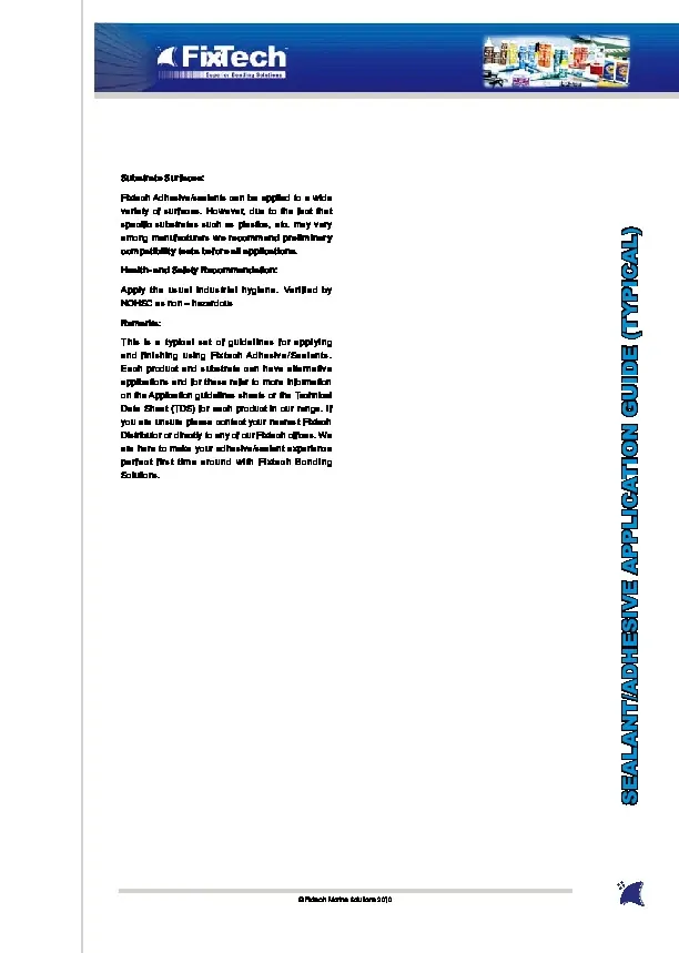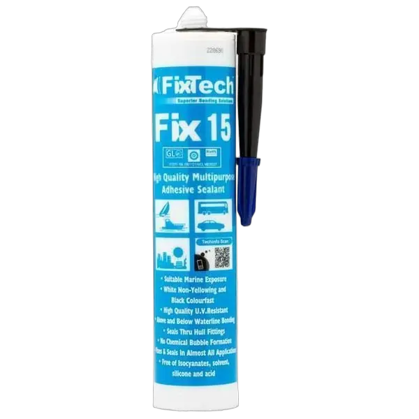 Fix15 is a high quality, single component flexible adhesive joint sealant that is suitable for above and below waterline applications. Based on Modified Polymer, it is chemically neutral and fully elastic. Suitable for use in low movement structural joints in Marine, Automotive, Aerospace and Construction applications where a strong flexible adhesive sealant is require